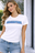 Remera femenina blanca con estampa ARGENTINA en tipografía moderna celeste y azul.