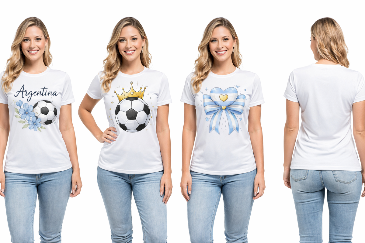 Remera femenina blanca con diseño ilustrado de labios celeste y blanco con cerezas, uniendo sensualidad, identidad y estilo argentino. Un modelo original que mezcla lo femenino con la pasión por nuestros colores, ideal para destacar con un look canchero y diferente.